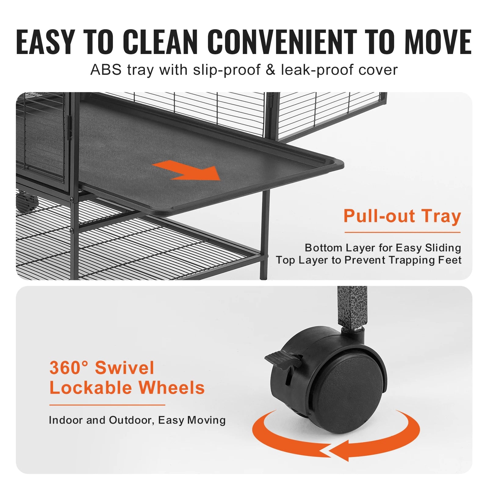 - Move and store with ease thanks to lockable wheels and a spacious overhead shelf, plus dual doors and a top window for effortless feeding and interaction.